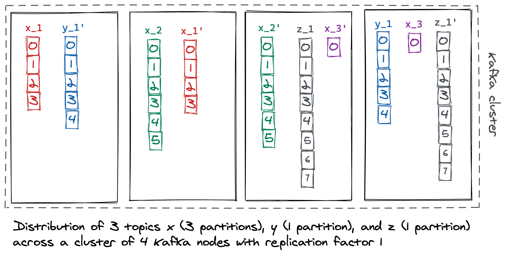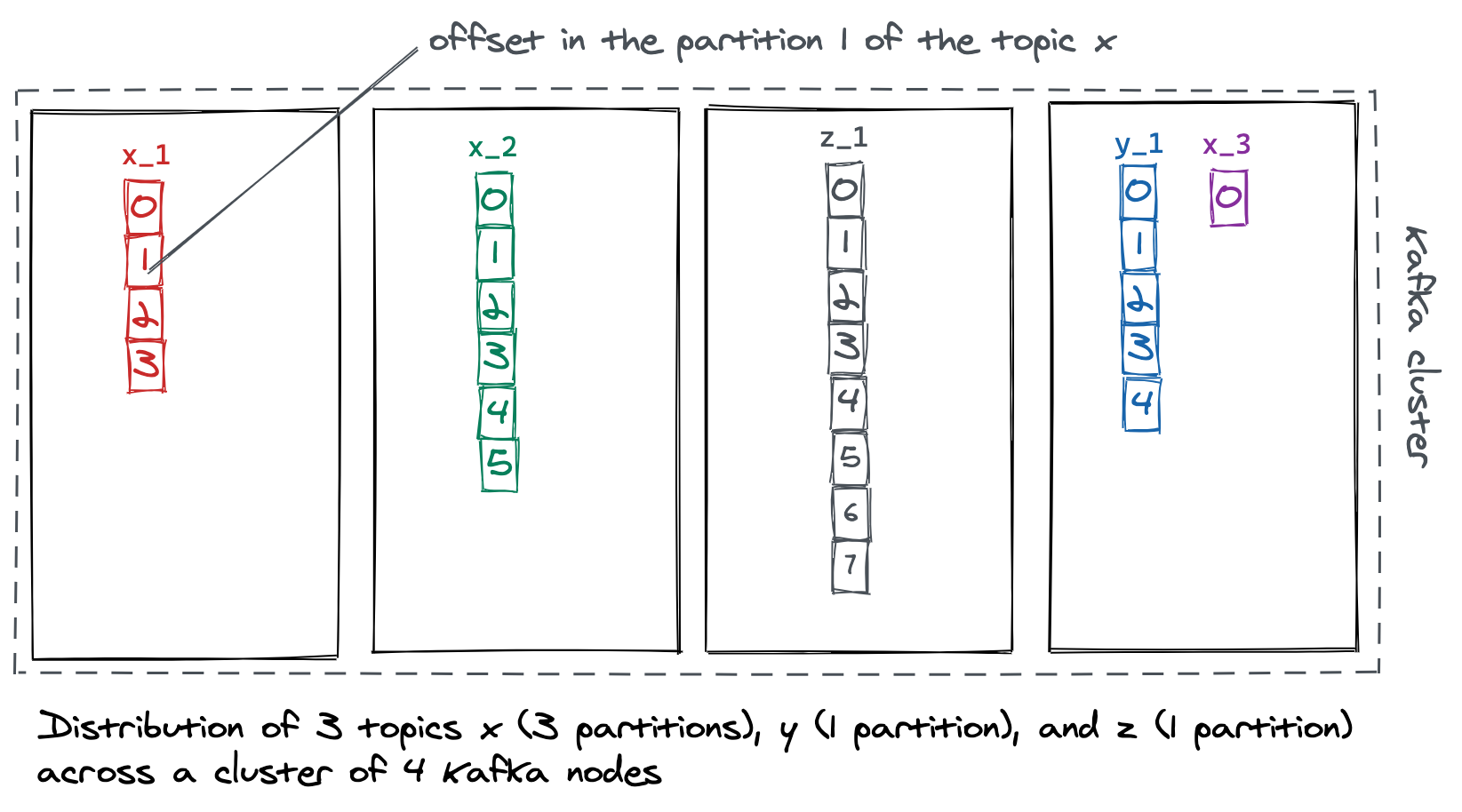 - A topic can have multiple partitions, which are also distributed across the cluster