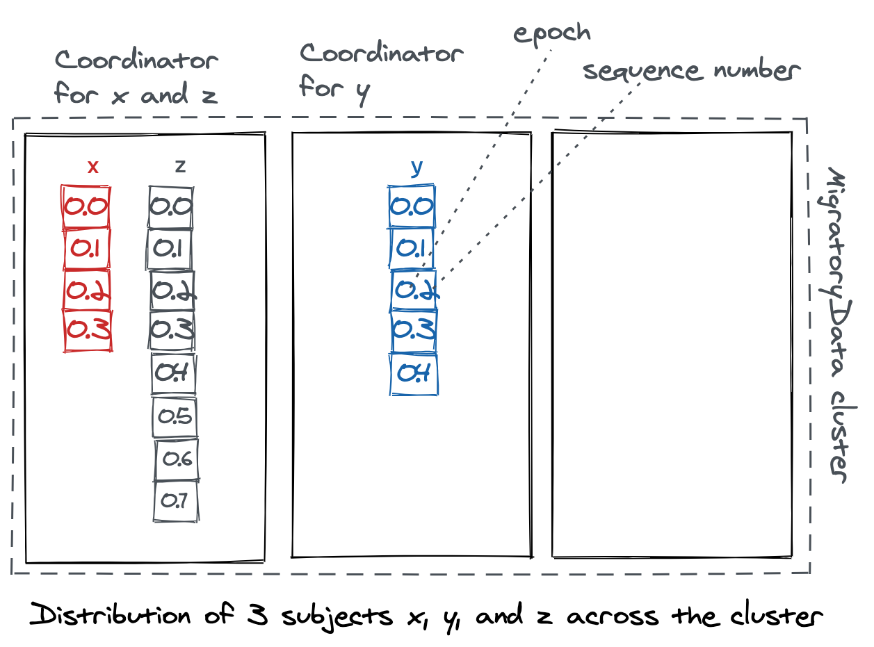 - Each node of the cluster is the coordinator (leader) for a distinct subset of subjects